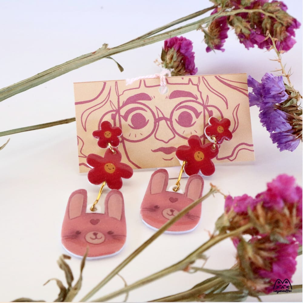Estos aretes de amigos osos o amigosos fueron dibujados digitalmente en clip studio paint y una vez impresos fueron intervenidos con lápices de colores con mucho amor y son muy ligeros